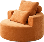 The Carl Compressed Swivel Chair brings bold comfort and modern style to any space. Designed with a spacious round silhouette, this accent chair features plush pillow-back cushioning and wide box arms for a relaxed, lounge-worthy feel. The smooth swivel base adds easy movement, making it perfect for conversation areas, reading corners, or open living spaces.