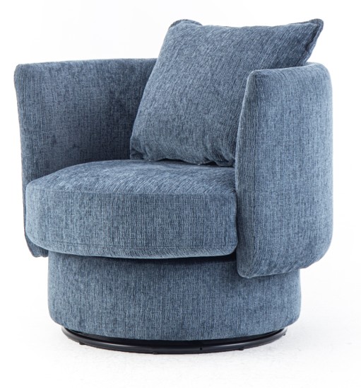Upholstered in soft, durable fabric and paired with a plush back pillow for added support, the Xander is perfect for lounging, reading, or relaxing in style. The smooth swivel base adds effortless functionality, making it a great choice for living rooms, bedrooms, or conversation spaces where comfort and movement matter most.